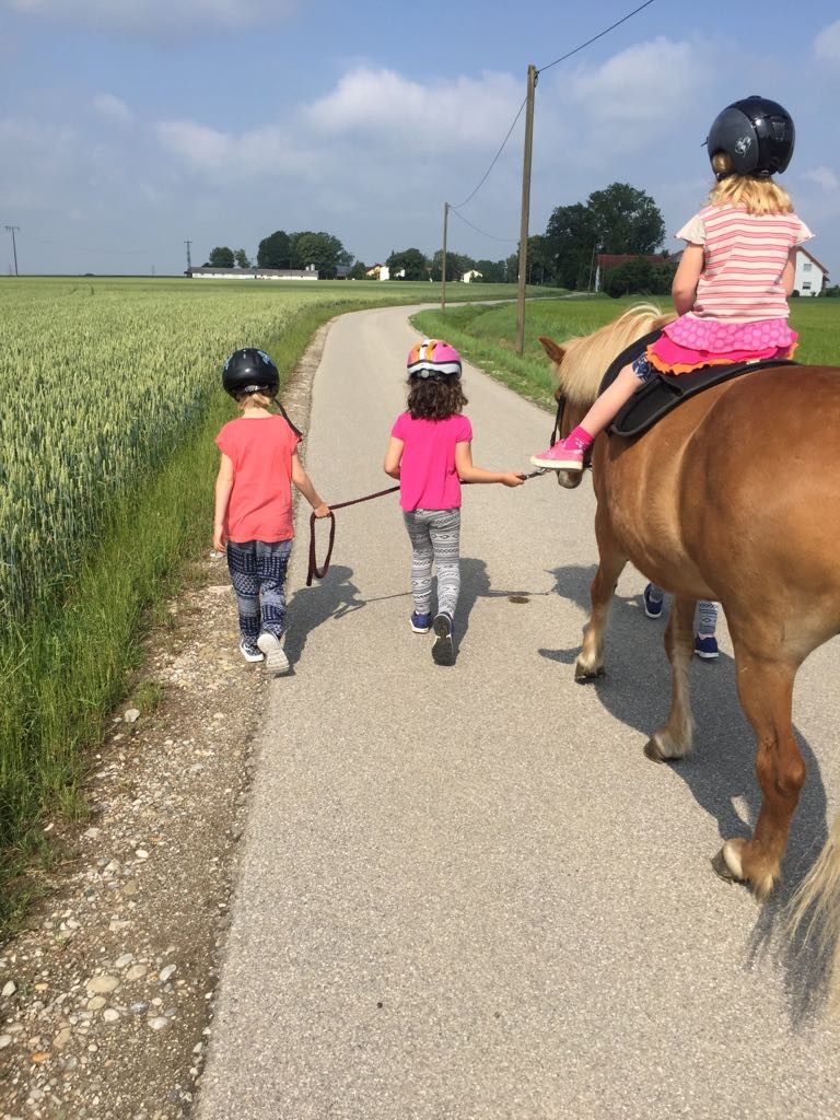 Für das Ferienprogramm benötigt Ihr Kind noch keine Reitausrüstung. Feste Schuhe, bequeme Hose und wetterfeste Kleidung, sowie Reithelm bzw. Fahrradhelm (Pflicht) sind völlig ausreichend. Für die Ferientage geben Sie Ihrem Kind bitte Getränke sowie eine kleine Brotzeit mit. Für kleine Snacks ist gesorgt.